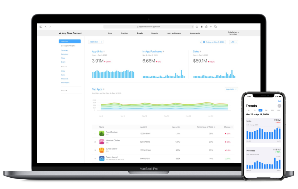 Im Laufe des Jahres werden die App-Analytics in App Store Connect um brandneue Daten erweitert, die Sie bei der Verwaltung und dem Wachstum Ihres Unternehmens unterstützen. Wenn Sie verstehen, wie Nutzerinnen und Nutzer Ihre App entdecken und mit ihr interagieren, können Sie noch bessere App Erlebnisse schaffen, die Ihr Unternehmen voranbringen. Die neuen Daten verraten zum Beispiel die Conversion Rate. Also wie vieler Nutzer:innen, die sich die App anschauen, laden Sie tatsächlich runter? Auch die Performance von Werbekampagnen können zukünftig besser getrackt werden.